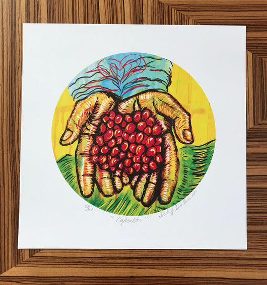 Medio mixto, Ilustración sobre madera colorizada digitalmente e impresa en papel. Firmada a mano y enumerada. Tamaño 12" x 12".
