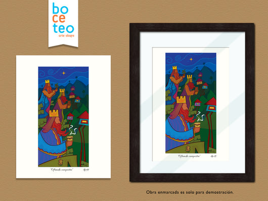 Tamaño 8.5" x 11". El enmarcado es solo para demostrar la obra.