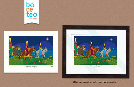Tamaño 8.5" x 11". El enmarcado es solo para demostrar la obra.